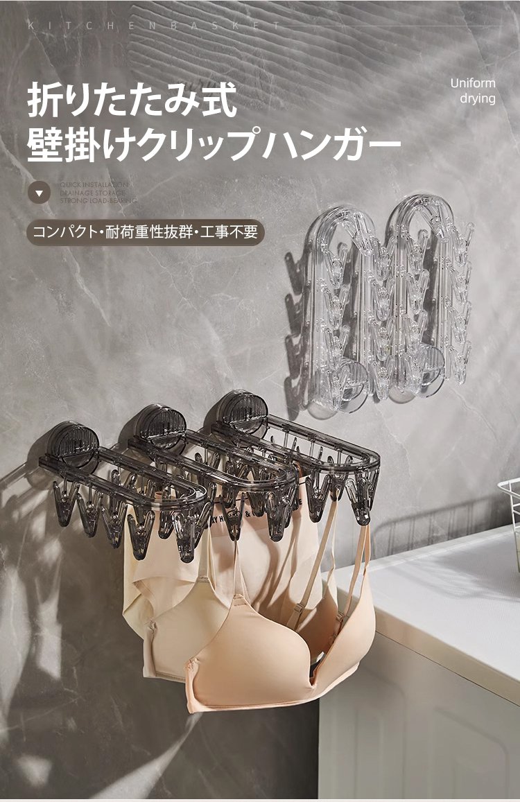 折りたたみ式壁掛けクリップハンガー